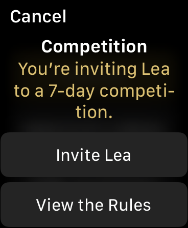 A Competition in the Activity app is a 1-week competition between you and a friend or family member who also has an Apple Watch. The competitions are based on the Activity Rings – Move, Exercise and Stand.